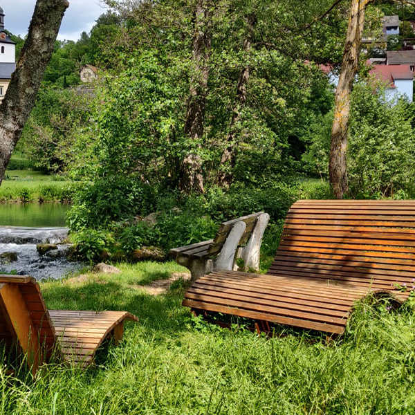 … schlängelt sich die Wiesent durch den gastfreundlichen Ort Muggendorf. Die kleine 650 Seelen Gemeinde ist auch als Luftkurort bekannt.